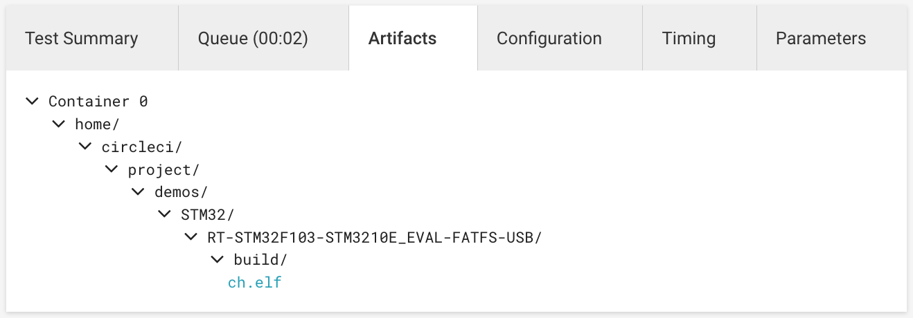 Last but not least, we want to stash the resulting elf file so we can download it later. This is especially useful if you want to test a previous build of your codebase without having to recompile it yourself.